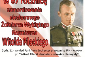 Kęty – 67 rocznica zamordowania niezłomnego Żołnierza Wyklętego Rotmistrza Witolda Pileckiego, 24 maja, g. 11, wykład Anny Zechenter pracownika IPN-Kraków pt.” Witold Pilecki – bohater – człowiek niezwykły”, o godz. 12 Msza św.