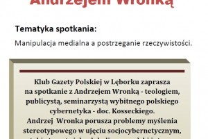 Lębork – spotkanie z Andrzejem Wronką nt.” Manipulacja medialna a postrzeganie rzeczywistości”, 22 stycznia, g. 19, Aula Jana Pawła II przy sanktuarium św. Jakuba.