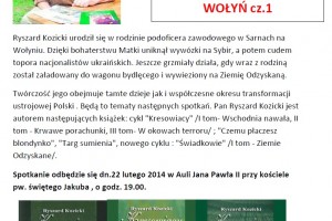 Read More →Lębork – spotkanie z Ryszardem Kozickim pt. „ Kresy wschodnie Polski Wołyń cz. 1”,22 lutego, g. 19, Aula Jana Pawła II przy Kościele pw. Św. Jakuba.