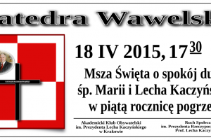 18 kwietnia 2015 r. (sobota) w Krakowie w V Rocznicę Pogrzebu Pary Prezydenckiej, o godzinie 17.30 odbędzie się uroczysta Msza św. w Katedrze Wawelskiej w intencji Ofiar Tragedii Smoleńskiej. Następnie odbędzie się przejście do…