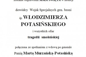 Read More →Gliwice – Msza św. za śp. gen. Włodzimierza Potasińskiego, dowódcy Wojsk Specjalnych, za Parę Prezydencką i wszystkie Ofiary tragedii smoleńskiej. Spotkanie z wdową Panią Martą Potasińską, 10 lutego, g. 18,…