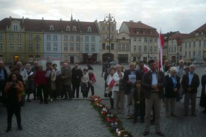 Read More →10 X 2014r. Mieszkańcy Bydgoszczy zebrali się na Starym Rynku, by uczcić pamięć ofiara Katastrofy Smoleńskiej, a także domagać się rzetelnego śledztwa w sprawie jej przyczyn. Zebrani ułożyli krzyż z kwiatów i zniczy. Przewodniczący…