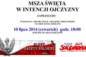 Klub Patriotyczny, Klub Gazety Polskiej i Koło Rodziny Radia Maryja w Warce zapraszają wszystkich na Mszę Świętą za wszystkich, którzy zginęli w katastrofie smoleńskiej, szczególnie za Prezydenta Lecha Kaczyńskiego i Jego Małżonkę Marię,…