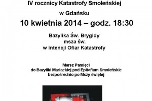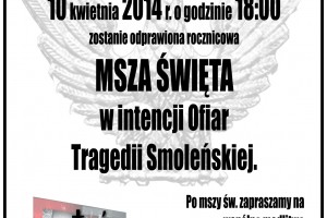 Gliwice – IV rocznica Tragedii Smoleńskiej, 10 kwietnia, g. 18, Msza św. w intencji Pary Prezydenckiej i wszystkich Ofiar, Kościół garnizonowy pw. Św. Barbary. Po Mszy św. wspomnienie o śp. gen. pilocie Andrzeju Błasiku oraz Krucjata Różańcowa…