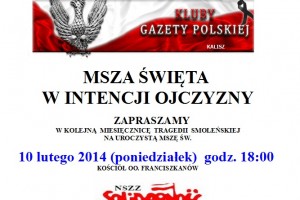 Kalisz – miesięcznica tragedii smoleńskiej, 10 lutego, g. 18, Msza św., Kościół Oo. Franciszkanów.