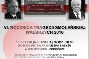 Wałbrzych – VI rocznica tragedii smoleńskiej, 10 kwietnia, g. 18, Msza św. Kościół pw. Św. Franciszka.