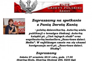 Arhus- spotkanie z red. Dorotą Kanią, połączone z promocją książki „Resortowe Dzieci. Media”, 27 września, g. 17, Skaering Skole, Skaering Skolevej 200, 8250 Ega.