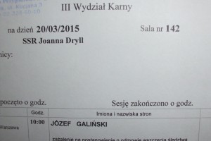 W dniu 20.03.2015 roku przed Sądem Warszawa-Wola odbyło się posiedzenie w sprawie rozpoznania zażalenia na postanowienie prokuratury o odmowie wszczęcia śledztwa w sprawie o powzięcie uzasadnionego podejrzenia popełnienia przestępstwa :