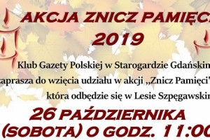 Read More →Starogard Gdański – akcja „Znicz Pamięci”, 26 października, g. 11, w Lesie Szpęgawskim. W ramach akcji odbędzie się sprzątanie masowe grobów pomordowanych oraz zapalone zostaną…