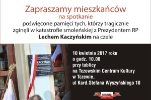 Read More →Tczew – spotkanie poświęcone pamięci Ofiar tragedii smoleńskiej, 10 kwietnia, g. 10, przy tablicy na Tczewskim Centrum Kultury, ul. Kard. Stefana Wyszyńskiego 10.