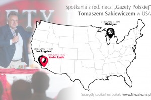 Read More →W soboty 30 marca oraz 6 kwietnia oraz w niedzielę 31 marca odbędą się w Stanach Zjednoczonych spotkania z Tomaszem Sakiewiczem, redaktorem naczelnym „Gazety Polskiej”. Pierwsze z nich w Los Angeles, kolejne w Michigan i Yorba Linda.