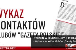 TYDZIEŃ W KLUBACH „GP”|Wykaz kontaktów Klubów „Gazety Polskiej” Tydzień w Klubach „GP” | 19.01.2022 r. Wykaz kontaktów Klubów „Gazety Polskiej” 🔴 CHCESZ ZAŁOŻYĆ… Read More → sty 18, 2022 Kluby GP KlubyGP, Tydzień w klubach, Wiadomosci, Wydarzenia Tagged Tydzień w klubach, Wykaz Klubów