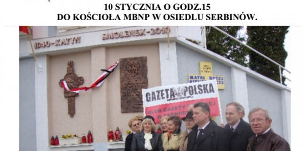 Tarnobrzeg – miesięcznica Tragedii Smoleńskiej, 10 stycznia, g. 15, Msza ś. w Kościele MBNP osiedle Serbinów. Tarnobrzeg – miesięcznica Tragedii Smoleńskiej, 10 stycznia, g. 15, Msza św. w Kościele MBNP osiedle Serbinów. sty 7, 2014 Kluby GP Tarnobrzeg Tagged Marsz, Miesięcznice, Obchody, Tarnobrzeg, Tragedia Smoleńska Wstecz Klub Gazety Polskiej w Filadelfii organizuje bal karnawałowy … Dalej Ostrowiec św. – spotkanie z Leszkiem Żebrowskim, historykiem i publicystą, 16 stycznia, g. 17.30