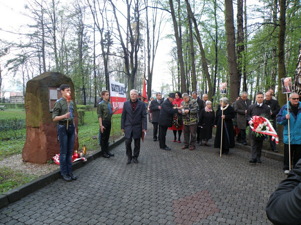 Po mszy świętej zgromadzeni przeszli pod Pomnik Ofiar Katastrofy Smoleńskiej. W asyście harcerskiej warty z pochodniami złożono kwiaty , zapalono znicze. Następnie odczytano rocznicowy apel Klubów Gazety Polskiej , zabrali głos włodarze miasta. Po odśpiewaniu Mazurka Dąbrowskiego, zagrano trąbką solo „Ciszę”.