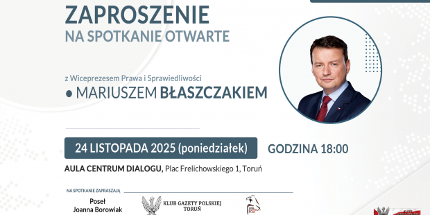 Poseł Joanna Borowiak, Klub Gazety Polskiej w Toruniu, Klub dyskusyjny Nowa Szewska Pasja zapraszają na spotkanie z ministrem