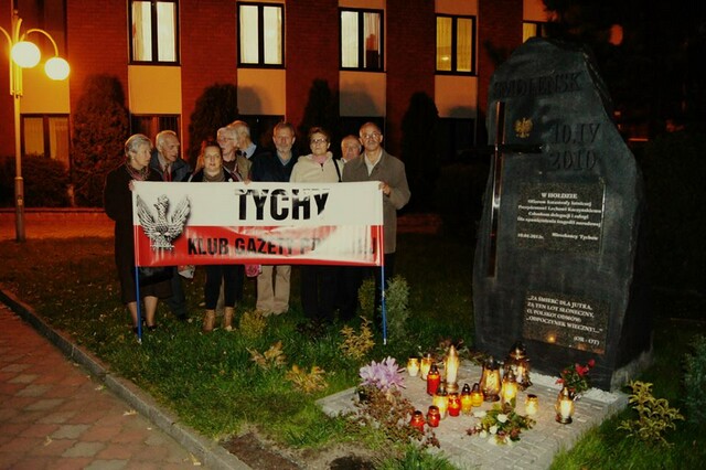 Miesięcznicę 10 października w Tychach obchodziliśmy nieco inaczej niż zazwyczaj. W tym dniu w kościele Św Krzysztofa członkowie klubu Gazety Polskiej poprowadzili Różaniec Św w intencjach Ojczyzny, Ofiar tragedii smoleńskiej oraz praworządności w naszej Ojczyźnie. Po modlitwie różańcowej odbyła się comiesięczna Msza Św w wymienionych intencjach a po mszy pod pomnikiem Smoleńskim zapalono znicze. Ksiądz Proboszcz poprowadził litanię za zmarłych, odczytano Apel Klubów Gazety Polskiej oraz odśpiewano pieśni. Całe spotkanie odbyło się w podniosłej atmosferze i wzięło w nim udział wielu Tyszan. Pięknieje również otoczenie naszego pomnika smoleńskiego gdzie spontanicznie sadzone są kwiaty i inne rośliny ozdobne a znicze są palone na co dzień, nie tylko w miesięcznice – dziękujemy za pamięć