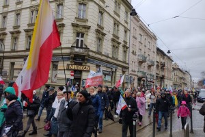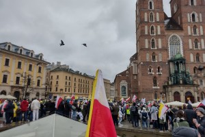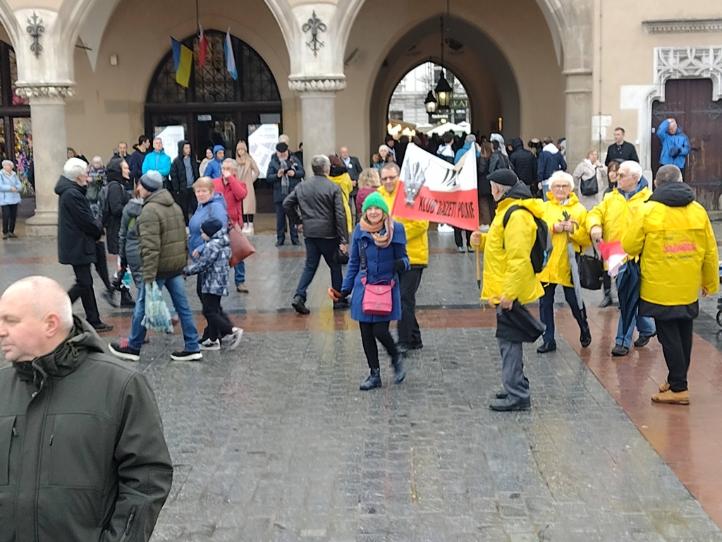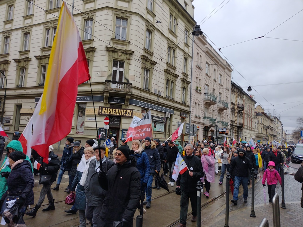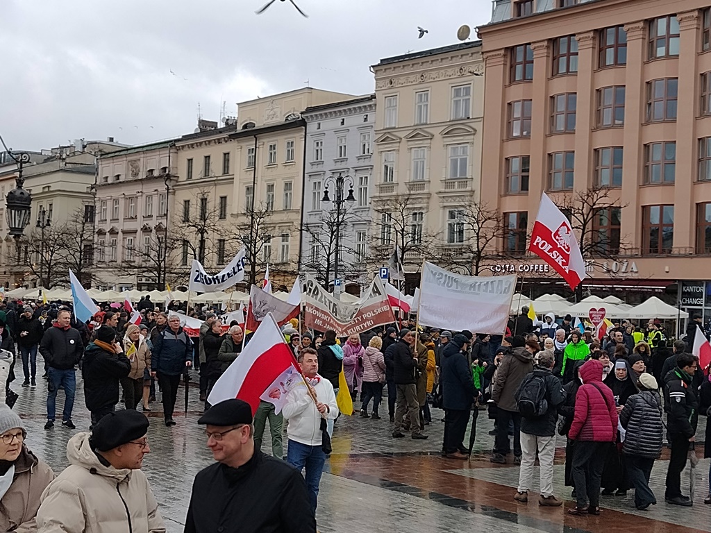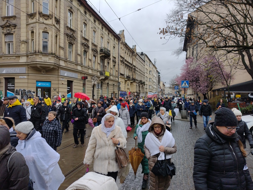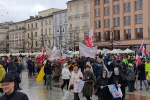 Znaleźliśmy się wśród tysięcy ludzi, którzy wyrazili swój sprzeciw dla szargania godności i świętości Jana Pawła II. Pomimo złej pogody, deszczu i słoty, tysiące ludzi wypełniło krakowskie ulice. Z krakowskich Błoni ulicami miasta z modlitwą na ustach, doszliśmy na Rynek, gdzie rozpoczęła się msza Święta.