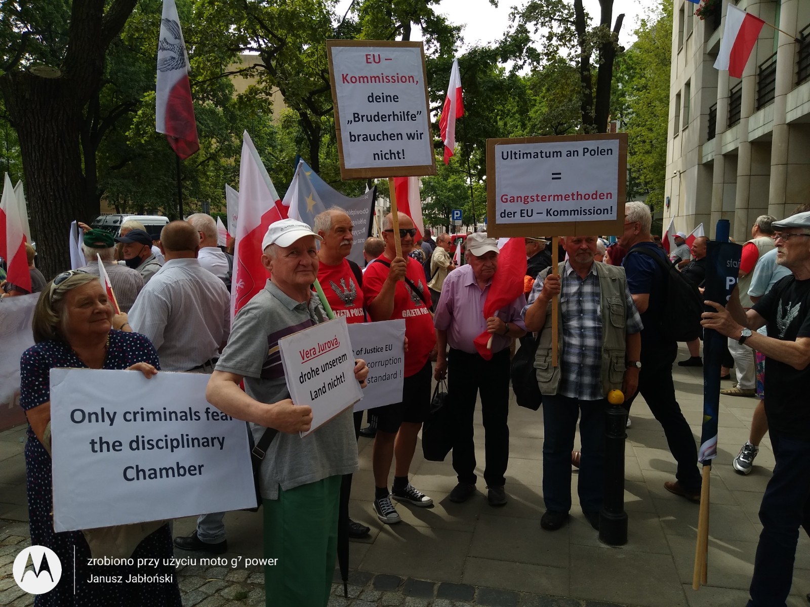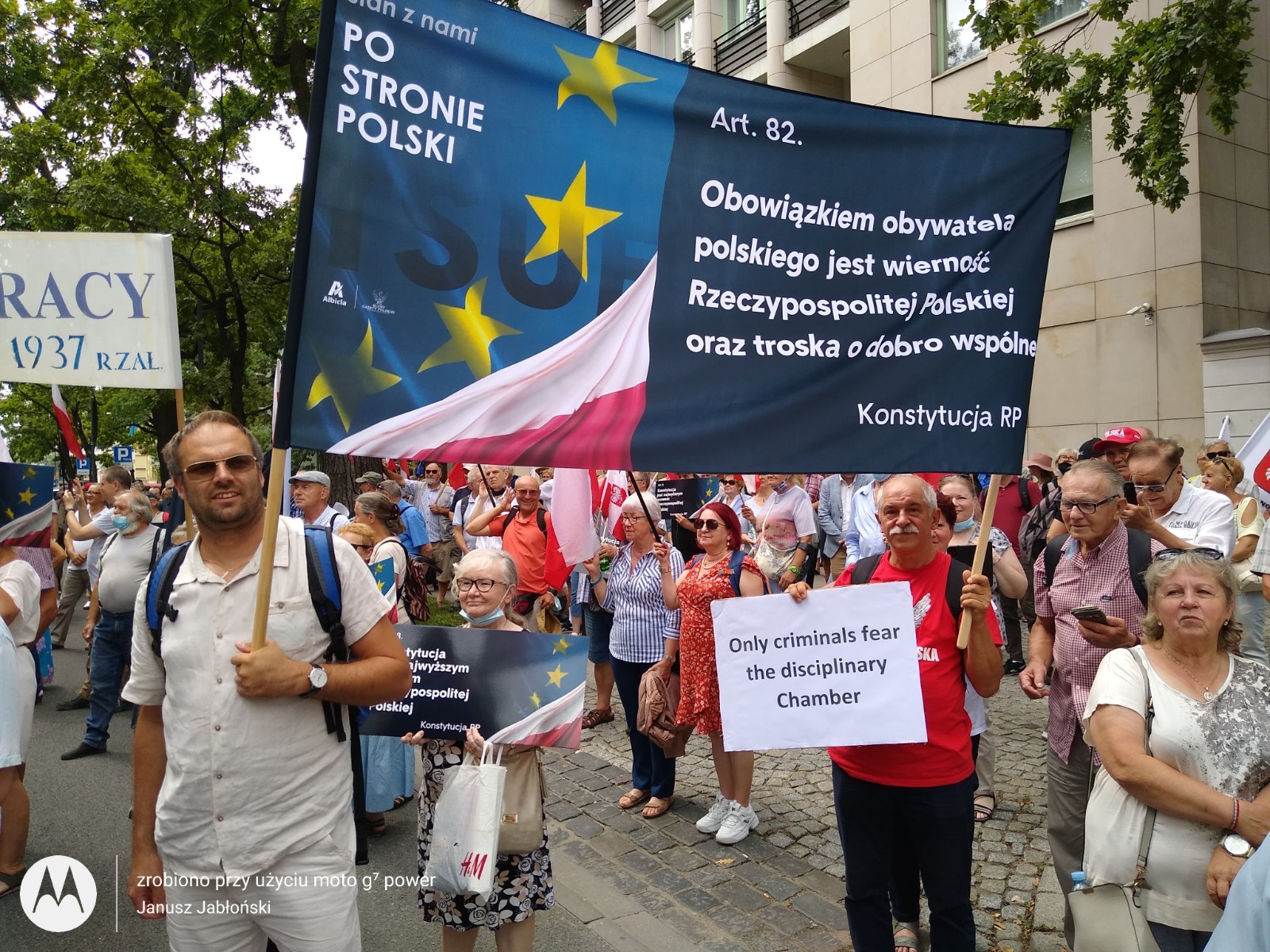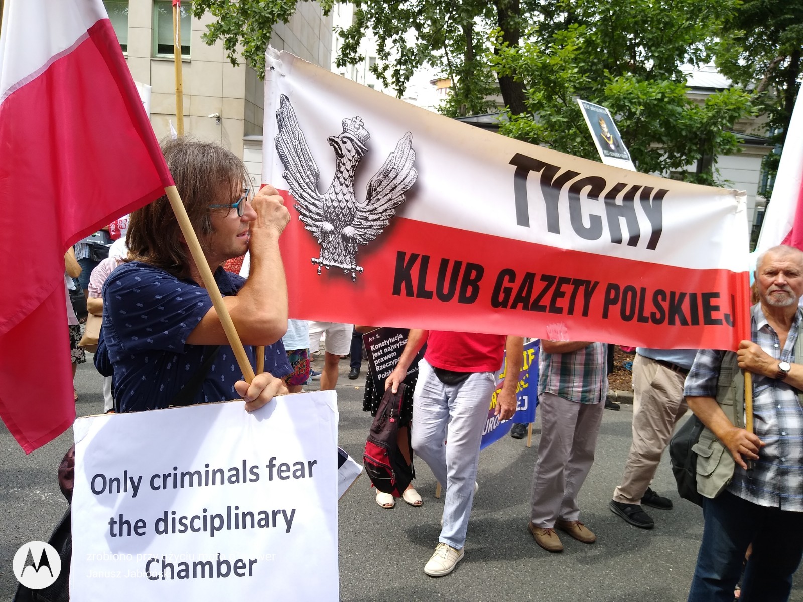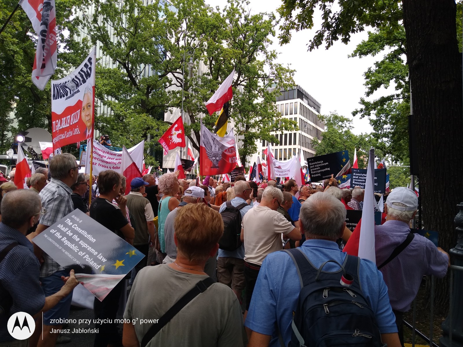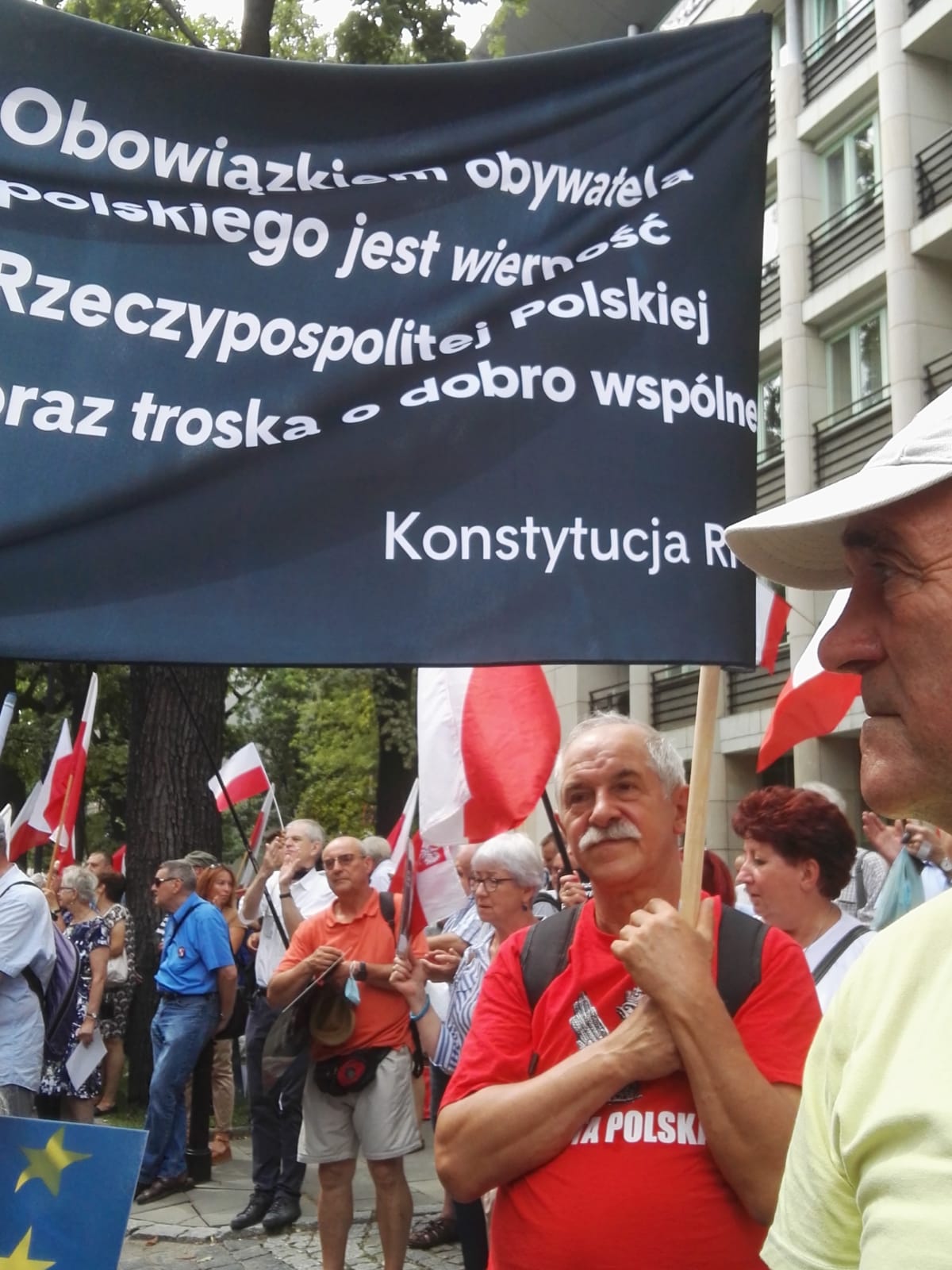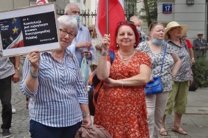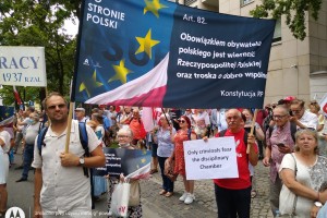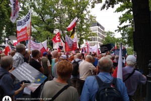 31 lipca Klub Gazety Polskiej w Tychach, wziął udział w manifestacji poparcia dla Trybunału Konstytucyjnego w sporze kompetencyjnym z Trybunałem Sprawiedliwości Unii Europejskiej. Decyzje TSUE w sprawach dotyczących naszego kraju są skandaliczne i nie mają żadnej podstawy prawnej. Polacy, biorąc udział w referendum akcesyjnym, które odbyło się w 2003 roku, wyrazili chęć wstąpienia w struktury UE, jednak nigdy nie wyrzekli się suwerenności i niepodległości swojego kraju. Teraz unijni urzędnicy oraz sędziowie TSUE swoimi nakazami odbierają Polakom tą suwerenność. Nie ma na to naszej zgody, nie ma na to zgody większości Polaków. Klubowicze przed manifestacją przygotowali i wydrukowali transparenty w językach niemieckim i angielskim „tylko kryminaliści boją się Izby dyscyplinarnej” , „Trybunał Sprawiedliwości UE to biznesowo- polityczna korporacja bez sprawiedliwości bez prawa i bez przyzwoitości” „ Komisjo Europejska zostaw Polskę w spokoju”, „Ultimatum , gangsterskie metody Unii Europejskiej” „ KE nie potrzebujemy waszej bratniej pomocy” i wiele innych. Wielotysięczna manifestacja odbyła się pod siedzibą Trybunału Konstytucyjnego. Manifestacja, która odbyła się przeddzień 77 rocznicy Powstania Warszawskiego była bardzo żywiołowa. Manifestację zorganizowały Kluby Gazety Polskiej. Wzięło w niej udział wielu gości.