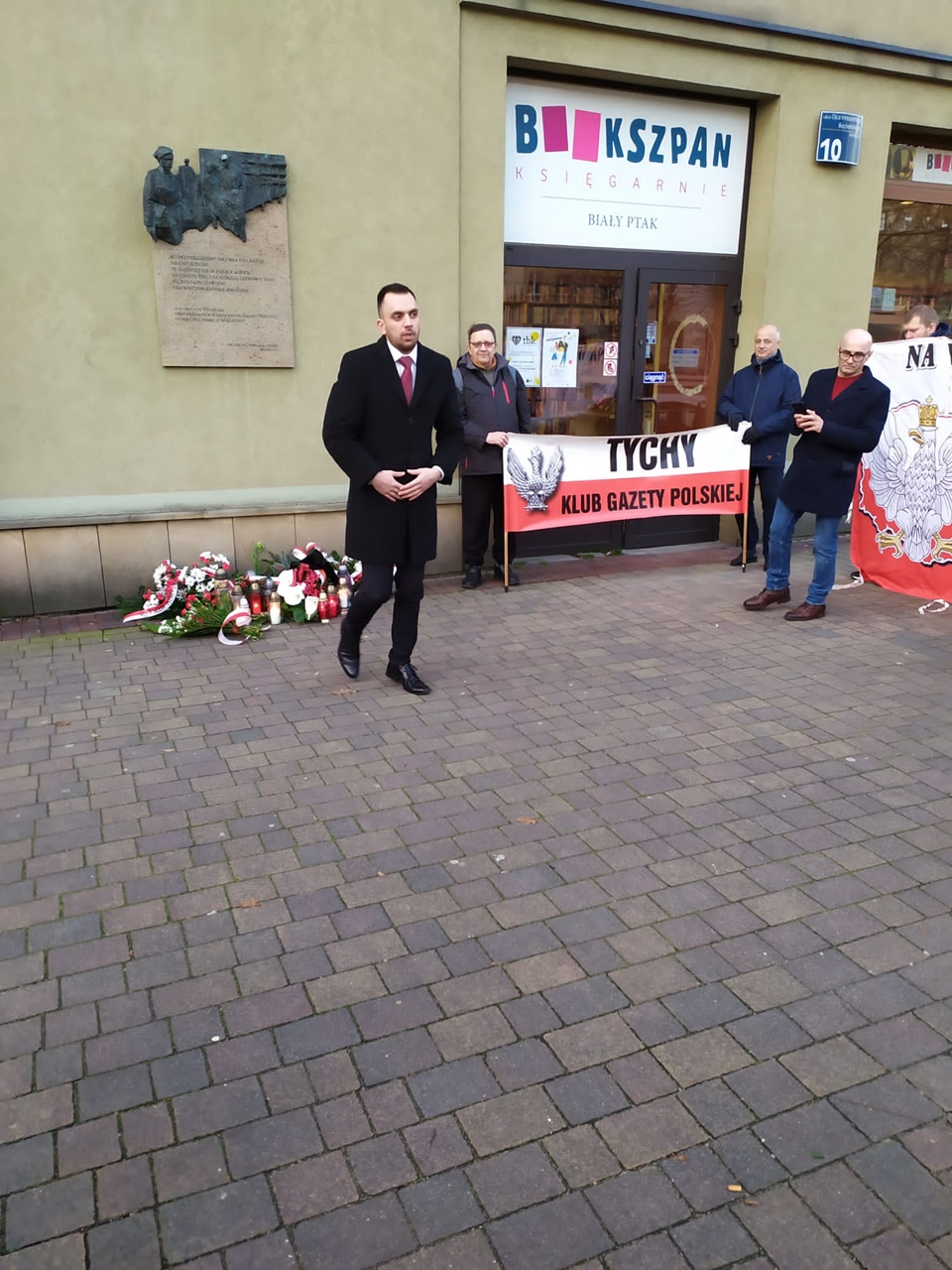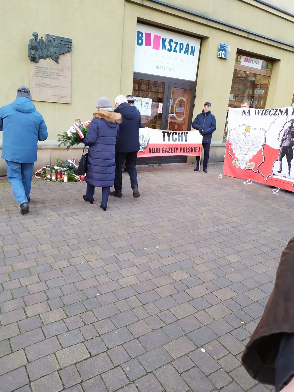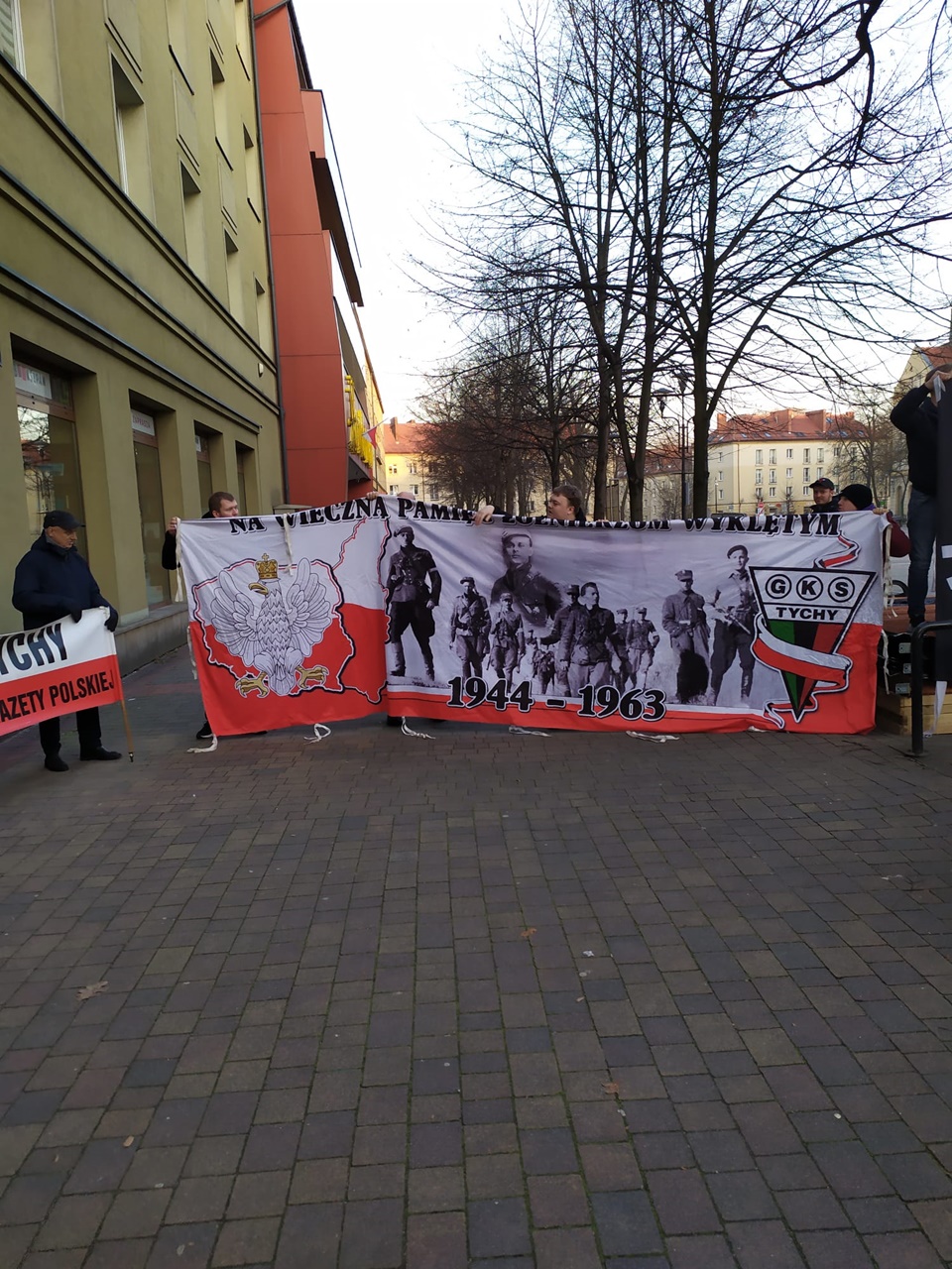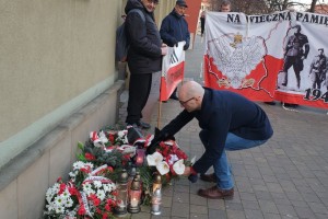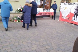 Jeszcze przed złożeniem kwiatów głos zabrał przedstawiciel klubu Gazety Polskiej Janusz Jabłoński, który przypomniał o co walczyli żołnierze niezłomni i za co mieli zostać wyklęci i usunięci z pamięci Polaków „teraz przyszedł czas, żebyśmy się o nich upomnieli, więc dzisiaj upominamy się i nie zapomnimy ich ofiary i poświęcenia. Cześć i chwała ich pamięci”, powiedział przedstawiciel klubu, na to wezwania tyscy kibice i reszta zgromadzonych trzykrotnie zakrzyknęła „część i chwała, bohaterom”.
