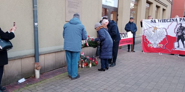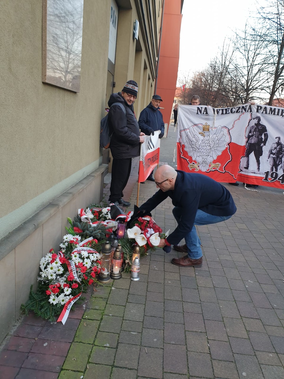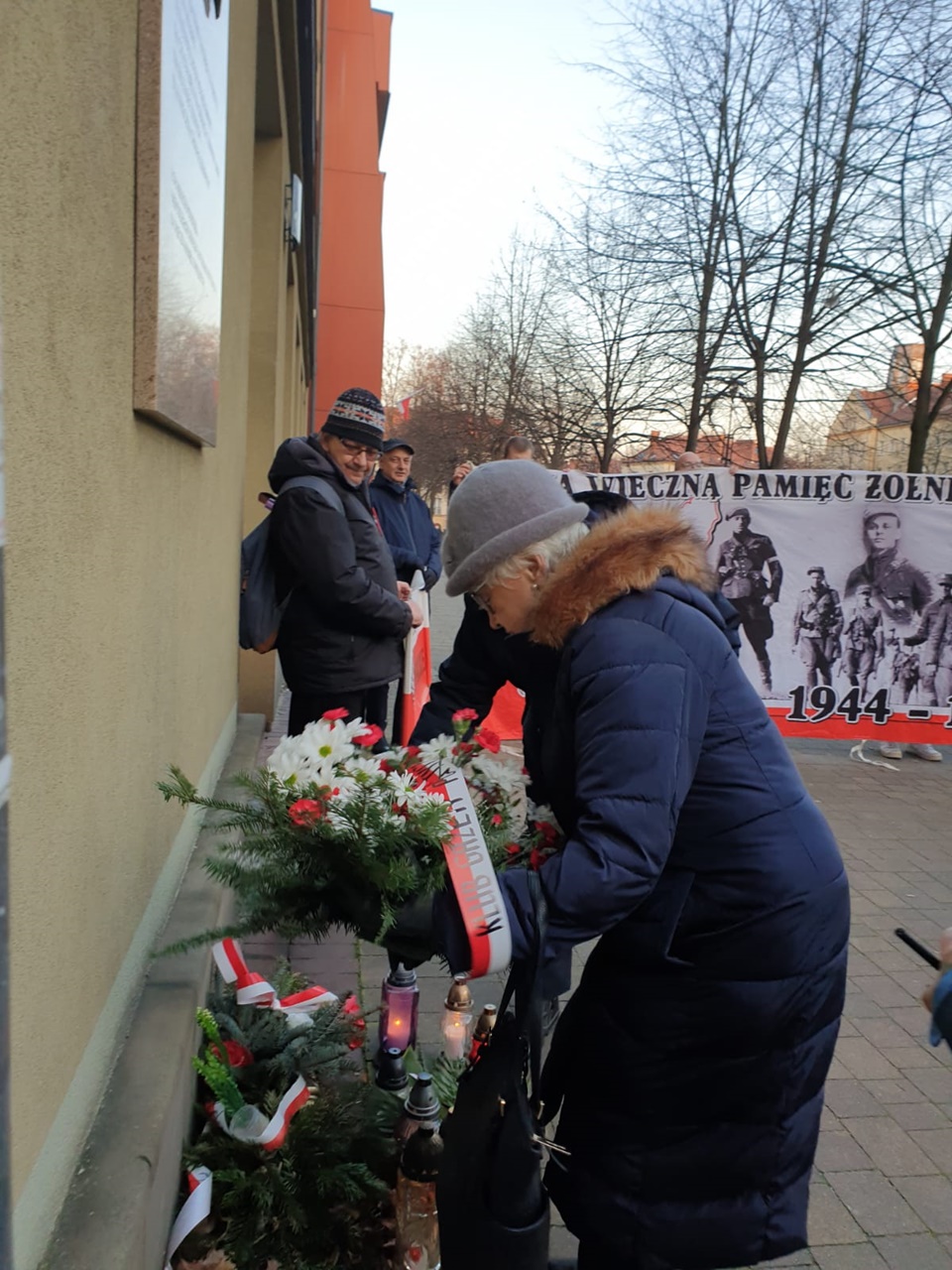 Jeszcze przed złożeniem kwiatów głos zabrał przedstawiciel klubu Gazety Polskiej Janusz Jabłoński, który przypomniał o co walczyli żołnierze niezłomni i za co mieli zostać wyklęci i usunięci z pamięci Polaków „teraz przyszedł czas, żebyśmy się o nich upomnieli, więc dzisiaj upominamy się i nie zapomnimy ich ofiary i poświęcenia. Cześć i chwała ich pamięci”, powiedział przedstawiciel klubu, na to wezwania tyscy kibice i reszta zgromadzonych trzykrotnie zakrzyknęła „część i chwała, bohaterom”.