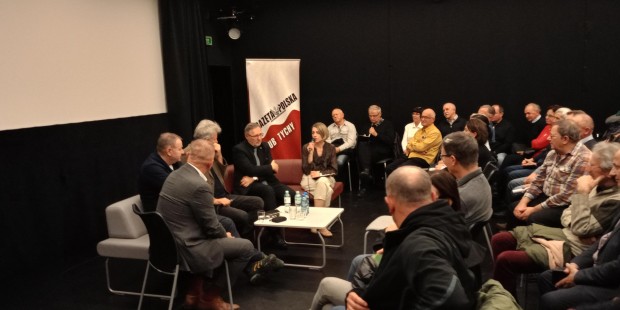 Po trwającej ponad godzinę projekcji filmu, prowadząca spotkanie przedstawicielka Stowarzyszenia Rodzina i Tożsamość oraz klubu GP w Tychach Anna Syrek wraz z Reżyserem filmu, zaprosili do dyskusji obecnych na sali Gości, przedstawicieli NZS w latach 80-tych: Marka Żelaznego, Adama Jawora oraz Mariusza Siembigę.
