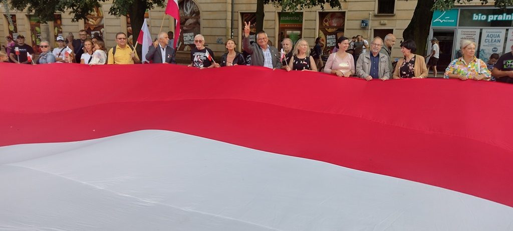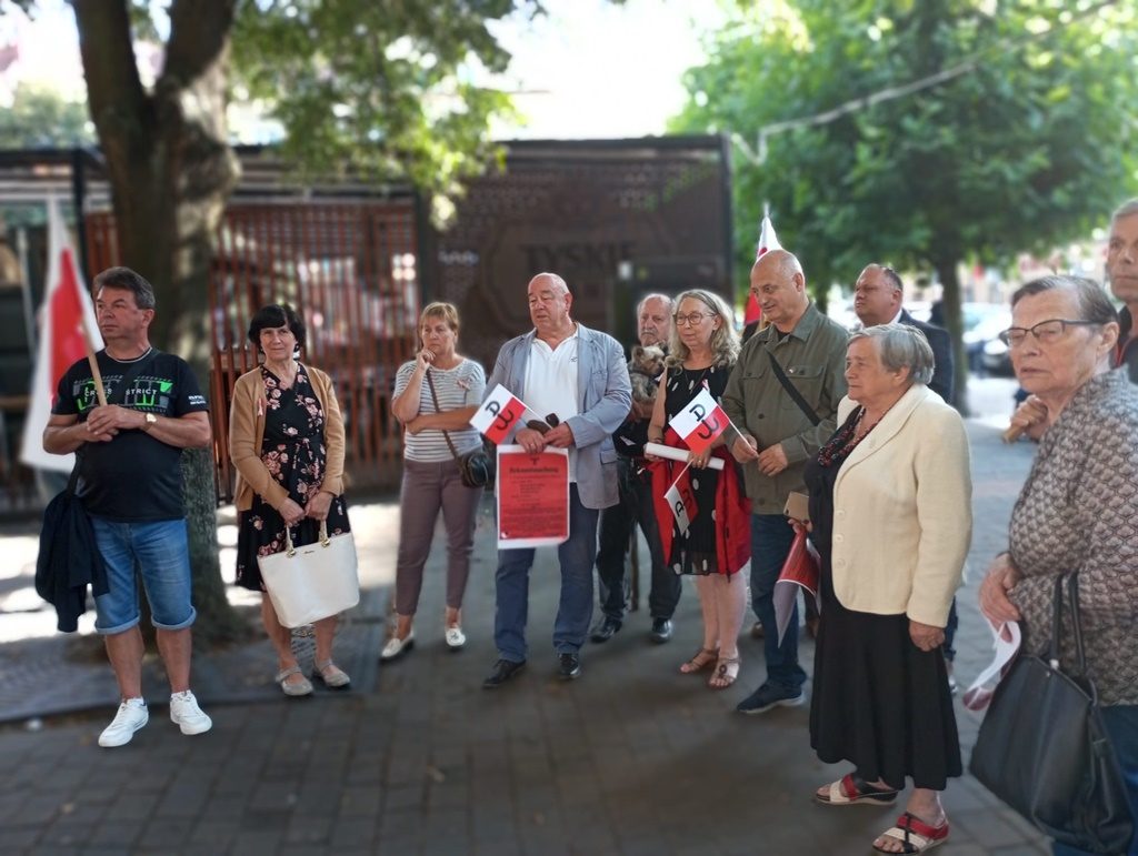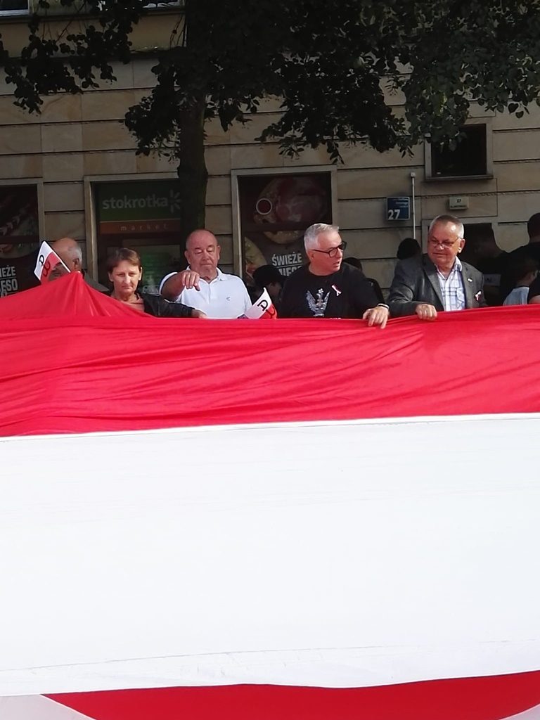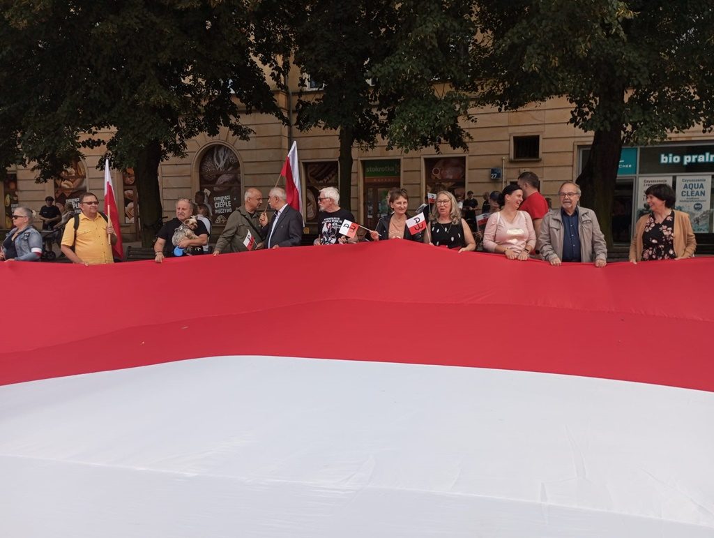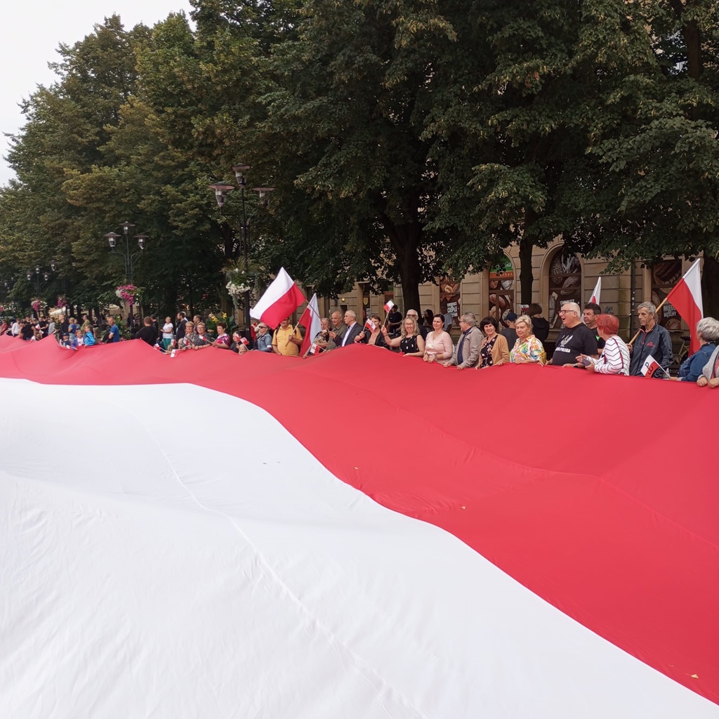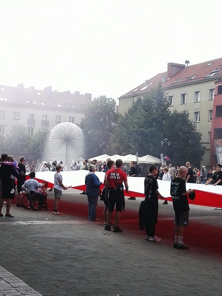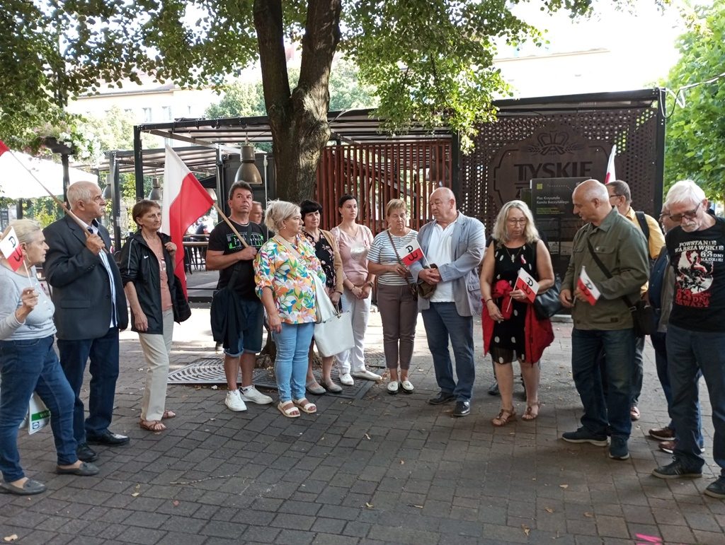 Po tej uroczystości, złożenie stu metrowej flagi okazało się niełatwym zadaniem, które wymagało zaangażowania wielu osób. Po złożeniu flagi wielu tyszan podeszło pod tablicę poświęconą Żołnierzom Podziemia Niepodległościowego. Tam radni Prawa i Sprawiedliwości oraz klubowicze „Gazety Polskiej” złożyli kwiaty. Przybyły na uroczystość Dr Andrzej Drogoń Dyrektor Muzeum Powstań Śląskich polski prawnik, historyk i wykładowca akademicki, podzielił się z zebranymi pod tablicą krótką refleksją historyczną na temat wydarzeń związanych z Powstaniem Warszawskim.