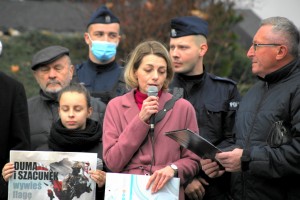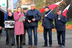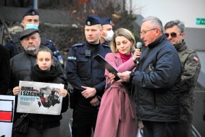W wiecu uczestniczył również Franciszek Noras (internowany w stanie wojennym współzałożyciel NSZZ „Solidarność” w KWK Ziemowit i uczestnik słynnego strajku w 1981 r. w kopalniach Ziemowit i Piast). Odczytał on list otwarty skierowany do komendanta tyskiej policji (wraz z Anną Syrek przekazał później ten list oficerowi dyżurnemu KMP). Na końcu Franciszek Noras od siebie dodał: „Szczęść Boże”, polecając policjantów, żołnierzy, funkcjonariuszy straży granicznej opiece św. Barbary, patronki górników. Treść listu przedstawiamy w załączeniu. Kilku funkcjonariuszy pojawiło się w miejscu wiecu a atmosfera tego spotkania była bardzo serdeczna. Na końcu spotkania wszyscy wspólnie odśpiewali Hymn Polski. Zapraszamy do fotorelacji.