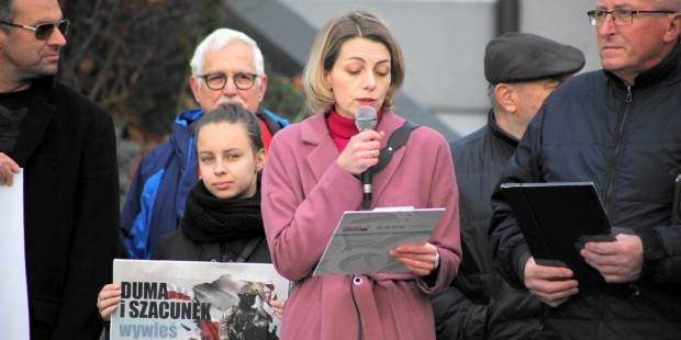 To co najbardziej bolesne to, jak próbuje się manipulować faktami. Oto obrońcy polskich granic, granic uświęconych krwią naszych przodków, stają się ofiarami najgorszego hejtu i nienawiści, przypisuje im się rolę agresorów, natomiast migrantów rzucających kamieniami, kłodami, granatami hukowymi w nasze służby niektórzy nazywają biednymi ludźmi poszukującymi swojego miejsca na ziemi. Proszę Państwa kto tutaj jest ofiarą? Komu należy się szacunek? Szczytnymi hasłami obrony praw człowieka, humanitaryzmu, próbuje się przykryć sedno problemu, a przecież sprawa jest prosta zostaliśmy zaatakowani przez reżim Łukaszenki, bo przecież wśród migrantów znajdują się białoruscy żołnierze, którzy eskalują napięcie, są agresywni, niszczą zabezpieczenia naszej granicy, oślepiają laserem nasze służby, oddają strzały. Prowokują naszych żołnierzy mierząc do nich z broni i wypychają migrantów na polską stronę. Tym większy należy się szacunek i podziękowania dla naszych chłopaków i dziewczyn pełniących służbę na granicy z Białorusią. Służą oni w ekstremalnie trudnych warunkach gdzie muszą wykazać się wysokim morale, odpowiedzialnością, opanowaniem, najwyższym profesjonalizmem. Jeszcze raz my mieszkańcy Tychów i innych śląskich miast chcemy podziękować za Waszą służbę, za to że bronicie nas, naszych rodzin, naszej Ojczyzny. Jesteśmy z Wami, trzymamy za Was kciuki i zapewniamy o naszej modlitwie.