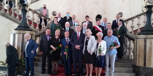Krzyże Wolności I Solidarności wręczał Prezes Instytutu Pamięci Narodowej Jarosław Szarek, który w krótkim przemówieniu przypomniał tło historyczne wydarzeń z roku 80′, kiedy powstawała Solidarność na Śląsku i późniejszy bardziej dramatyczny okres po wprowadzeniu Stanu Wojennego.