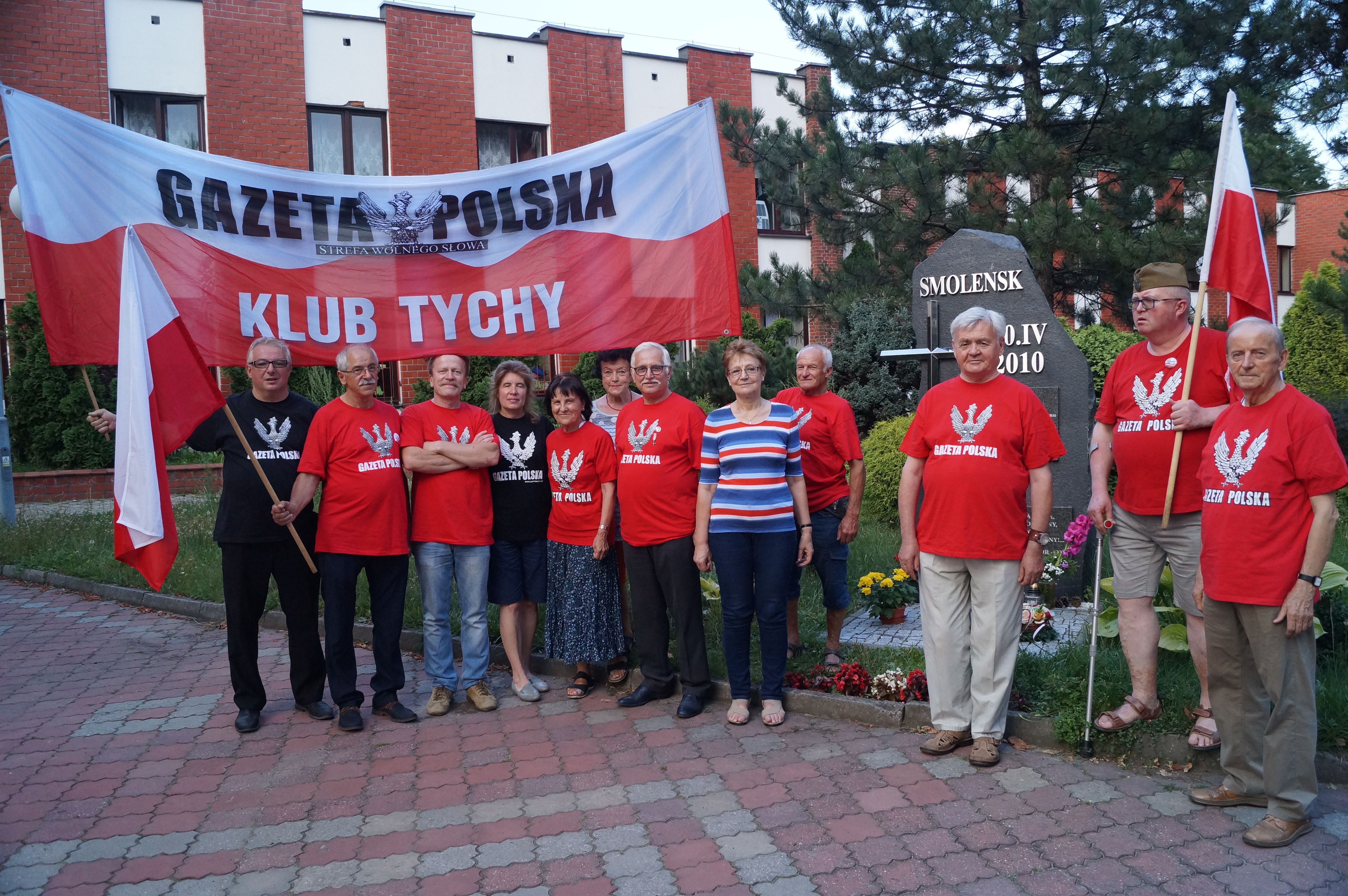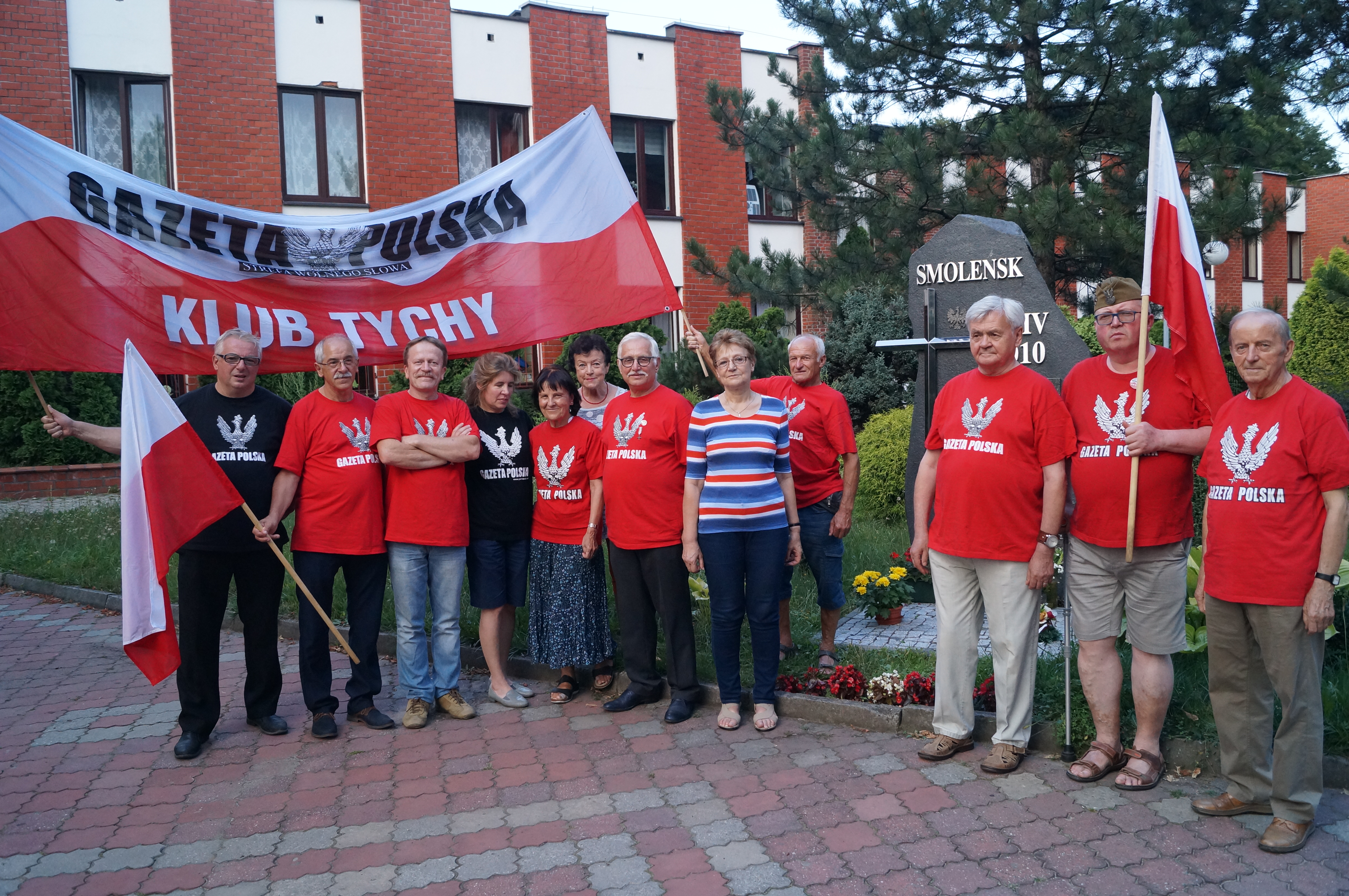 Klub Gazety Polskiej w Tychach na zebraniu 2 sierpnia specjalnie z okazji 70 rocznicy urodzin Antoniego Macierewicza przygotował upominek w postaci pięknie wydanych pieśni patriotycznych, złożył specjalną dedykację. Przybyli klubowicze zrobili również wspólne zdjęcia przed pomnikiem Smoleńsk 2010, który znajduje się przy parafii pw. Św. Krzysztofa. Pomnik powstał w roku 2013 , inicjatywa jego budowy powstała na jednym z zebrań klubu Gazety Polskiej w Tychach, które wtedy odbywały się jeszcze przy parafii Św. Rodziny. Na jednym z zebrań zawiązał się wtedy komitet , który za cele przyjął budowę i odsłonięcie pomnika. W realizację tego zamierzenia, zbiórkę pieniędzy, i inne różne działania techniczne zaangażowało się wielu klubowiczów oraz mieszkańców i patriotów nie zrzeszonych w klubie GP. Pomnik odsłonięto w 2013 roku. Na czarnym kamieniu widnieje cytat:
