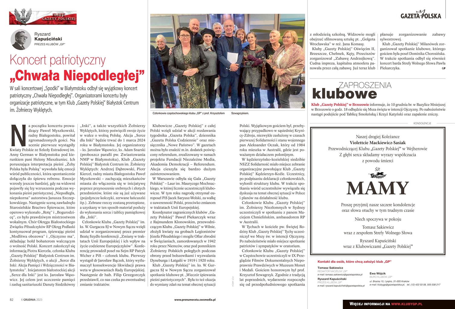 GazetaPolska_2023-12-06- gru 5, 2023 Dalej TYDZIEŃ W KLUBACH „GAZETY POLSKIEJ” | Koncert patriotyczny „Chwała Niepodległej”