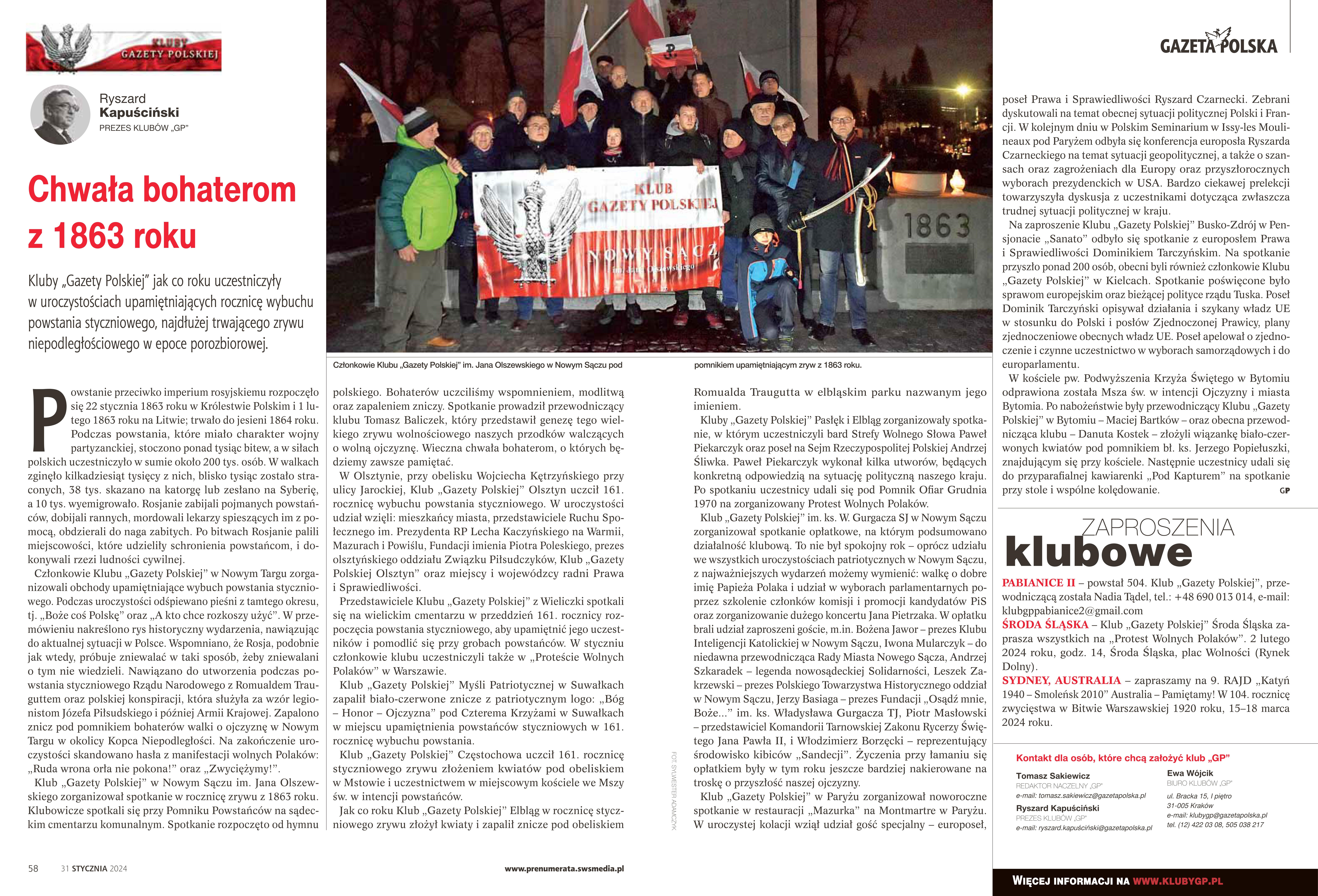 GazetaPolska_2024-01-31 lut 7, 2024 Dalej TYDZIEŃ W KLUBACH „GAZETY POLSKIEJ” | Chwała bohaterom z 1863 roku