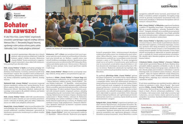 W całej Polsce Kluby „Gazety Polskiej” zorganizowały uroczystości upamiętniające tragicznie zmarłego żołnierza Mateusza Sitka z 1. Warszawskiej Brygady Pancernej, ugodzonego nożem podczas ochrony granicy polsko–białoruskiej. Cześć i chwała poległemu żołnierzowi!