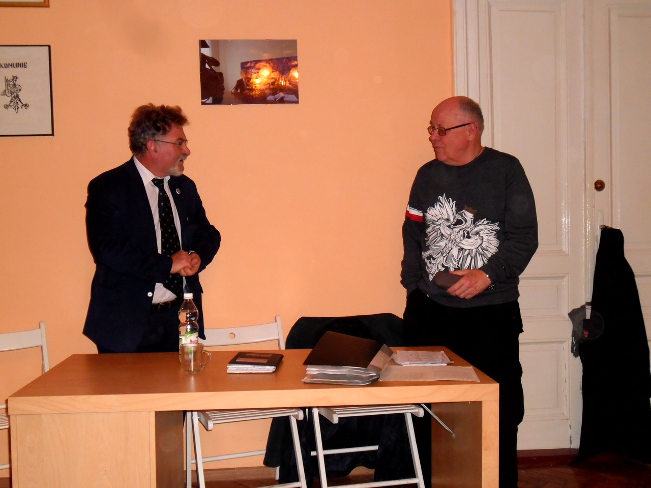 wieliczka_2016_11_29_4Klub „GP” Wieliczka gościł Jacka Smagowicza, działacza opozycji antykomunistycznej oraz NSZZ ”Solidarność”. Uczestnik wydarzeń Marca 1968 w Krakowie. Założyciel Wolnych Związków Zawodowych w Polmozbycie Kraków w 1980. Od września 1980 jest członkiem i działaczem NSZZ ”Solidarność”. Od 1990 r. członek Zarządu Regionu NSZZ ”Solidarność” Małopolska, w latach 1992-2011 członek Prezydium Komisji Krajowej NSZZ ”Solidarność”. 17 grudnia 1981 za zorganizowanie strajku został zwolniony z pracy. Aresztowany 19 kwietnia 1982 i skazany za kontynuowanie działalności związkowej. Do 1 października 1982 internowany w ośrodkach odosobnienia. Postanowieniem Prezydenta Lecha Kaczyńskiego za wybitne zasługi w działalności na rzecz przemian demokratycznych w Polsce, za osiągnięcia w pracy zawodowej i społecznej został odznaczony Krzyżem Komandorskim Orderu Odrodzenia Polski. Spotkanie z Jackiem Smagowiczem i jego wystąpienie wywarło na uczestnikach spotkania bardzo duże wrażenie.