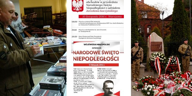 11 listopada w Krakowie obchody Narodowego Święta Niepodległości rozpoczną się o godz. 10.00 Mszą św. w Katedrze Wawelskiej; 11.15 pochód patriotyczny z Wawelu na Plac Matejki, gdzie odbędzie się dalsza część uroczystości z udziałem Wojska Polskiego. Przemówienie wygłosi Wojewoda Małopolski Józef Pilch. Godz. 16.30 Msza św. w Katedrze Wawelskiej z udziałem Prezesa PiS Jarosława Kaczyńskiego. Godz. 18.30 dalsza część uroczystości w budynku Polskiego Towarzystwa Sportowego „Sokół”, ul. Piłsudskiego 27. Przemówienie Prezesa PiS Jarosława Kaczyńskiego i red. Tomasza Sakiewicza.