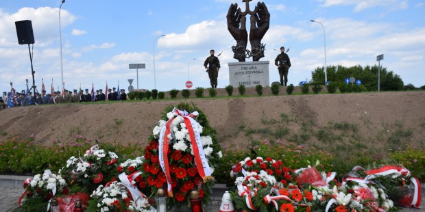 Suwalki2W Suwałkach odsłonięto pierwszy na świecie Pomnik Ofiar Obławy Augustowskiej z lipca 1945 r. Obława augustowska (inaczej: obława lipcowa) była operacją przeprowadzoną w lipcu 1945 roku przez oddziały 50 Armii radzieckiej i wojska NKWD, oraz wydzielone oddziały LWP i UB. Celem akcji było rozbicie i likwidacja oddziałów podziemia niepodległościowego i antykomunistycznego w rejonie Suwałk i Augustowa. Oddziały należące do 3 Frontu Białoruskiego (według ustaleń IPN były to oddziały 50 Armii) i jednostki 62 Dywizji Wojsk Wewnętrznych NKWD), osłaniane i wspomagane przez UB i pododdział złożony z dwóch kompanii w sile ok. 110-160 żołnierzy 1 Praskiego Pułku Piechoty (dowodzonego przez por. Maksymiliana Schnepfa, ojca Ryszarda Schnepfa – byłego ambasadora RP m.in. w Stanach Zjednoczonych), przeprowadziły szeroko zakrojoną akcję pacyfikacyjną obejmującą tereny Puszczy Augustowskiej i jej okolic. Wśród żołnierzy polskich wspomagających Rosjan udział w pacyfikacji brał późniejszy szef MSW Mirosław Milewski, ówczesny pracownik Urzędu Bezpieczeństwa w Augustowie (który wykazywał się wielką gorliwością w pomocy organizatorom obławy). Oddziały radzieckie otaczały tamtejsze wsie, aresztując ich mieszkańców podejrzanych o kontakty z partyzantką niepodległościową. Zatrzymano ponad 7 tysięcy osób. Sowieci utworzyli obozy filtracyjne, gdzie torturowano i przesłuchiwano zatrzymanych, przetrzymując ich skrępowanych drutem kolczastym w dołach zalanych wodą pod gołym niebem. 252 aresztowanych Litwinów, zaangażowanych w litewski ruch niepodległościowy, przekazano miejscowym organom NKWD – Ludowego Komisariatu Bezpieczeństwa Państwowego Litwy. Około 600 osób narodowości polskiej zostało wywiezionych w nieznanym kierunku i wszelki ślad po nich zaginął. Obława augustowska nazywana jest niekiedy „Małym Katyniem”. Pomnik powstał z inicjatywy Związku Pamięci Ofiar Obławy Augustowskiej 1945 i jej prezesa ks. prałata Stanisława Wysockiego syna i brata Ofiar – jego ojca i dwóch sióstr, który był świadkiem Obławy jako 7 letni chłopiec. Uroczystości rozpoczęły się uroczystą mszą świętą w intencji Ofiar, pod przewodnictwem ks. abpa Sławoja Leszka Głódzia, Metropolity Gdańskiego, który m.in. powiedział: „Jeszcze nie zagoiły się rany i pozostały w wielu oczach łzy. I ukazuje do czego są zdolne systemy polityczne, ideologie w służbie zła i nieprawości. I uświadamia jak wielka była cena tej polskiej wolności, którą się dziś cieszymy, o której kształt wciąż zmagamy.” Ks. Antoni Wysocki, który był pomysłodawcą pomnika i wskazując na jego charakter edukacyjny stwierdził: „To znak, niezwykły znak, który będzie ciągle na tym rondzie edukował i informował, że oni zginęli, bo byli wierni Bogu i Ojczyźnie”. List do uczestników uroczystości skierował Jarosław Kaczyński; odczytany został przez wiceministra spraw wewnętrznych Jarosław Zieliński. Prezes PiS napisał, że: „odkrycie całej prawdy jest jeszcze przed nami, wciąż jest bolesnym zadaniem i wyzwaniem, ale ofiarom obławy augustowskiej możemy i musimy oddawać sprawiedliwość w postaci różnych form upamiętnienia”. W uroczystościach oprócz przedstawiciel władz państwowych i samorządowych, kompanii reprezentacyjnych służb mundurowych, uczniów szkół i mieszkańców, uczestniczyli członkowie Klubu „GP” – Myśli Patriotycznej w  Suwałkach, którzy złożyli kwiaty i zapalili biało czerwone znicze.