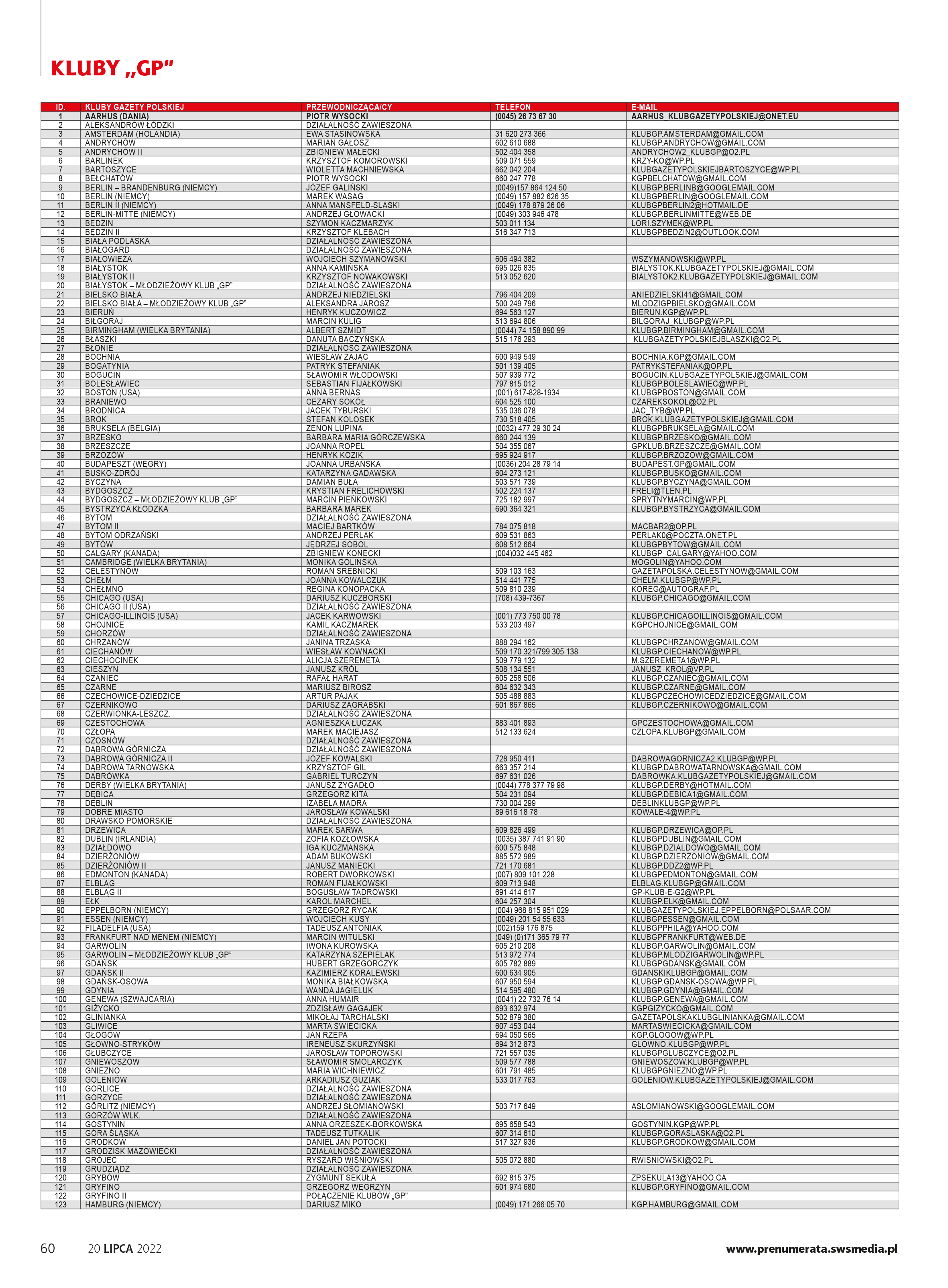 Wykaz kontaktów Klubów „Gazety Polskiej”