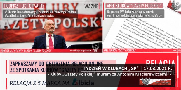 Środowisko związane z Klubami „Gazety Polskiej” od pierwszych dni domagały się prawdy o tragedii nad Smoleńskiem. Pod koniec września 2010 r. Kluby „Gazety Polskiej” złożyły „Petycję do Kongresu USA w sprawie katastrofy pod Smoleńskiem”, w której proszono o powołanie międzynarodowej komisji, która wyjaśni przyczyny katastrofy, organizowano Marsze Pamięci, setki spotkań z naukowcami. Ale przede wszystkim wspieraliśmy i wspieramy Ministra Antoniego Macierewicza w jego pracy mającej wyjaśnić przyczyny katastrofy.