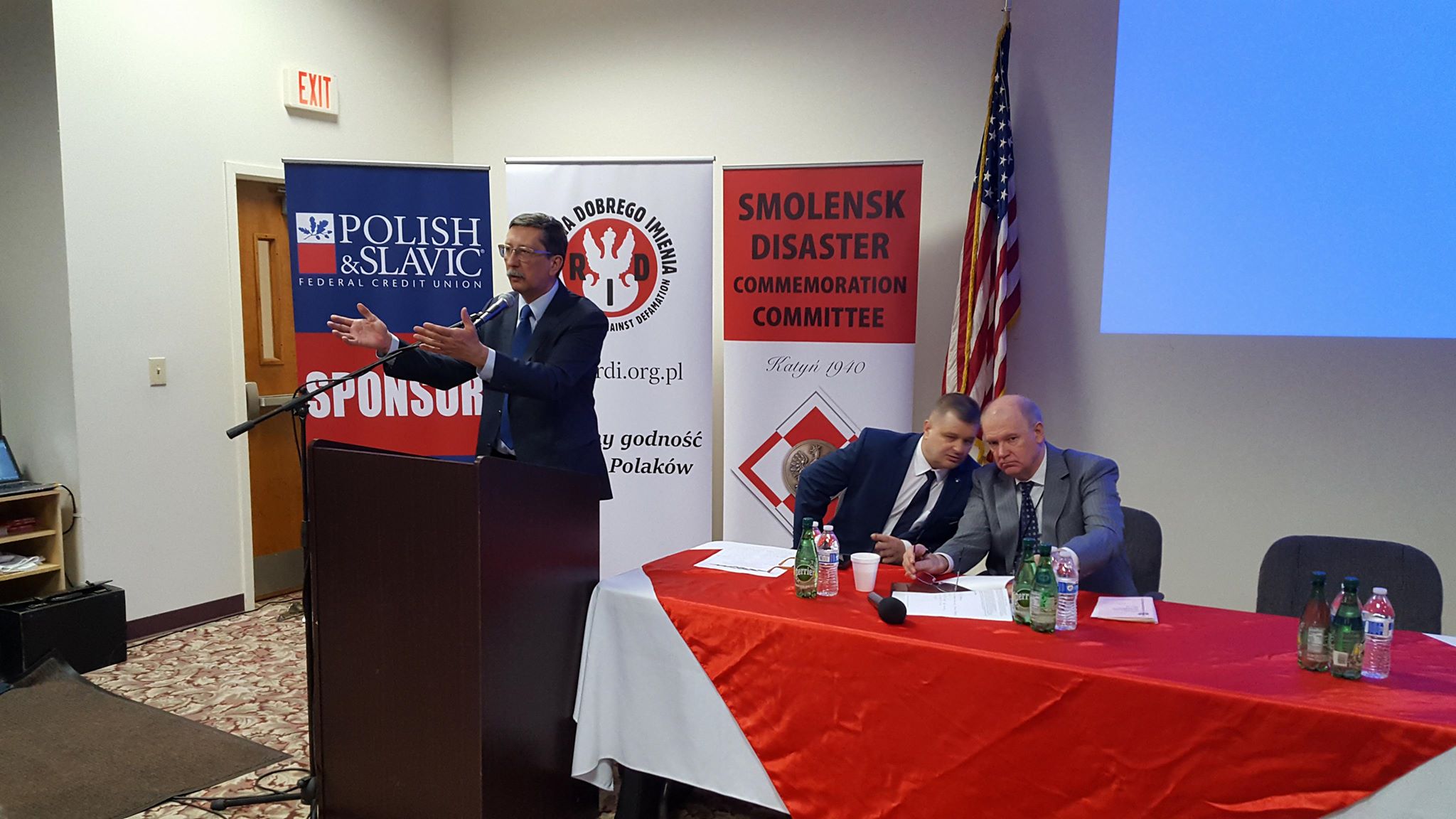 Wystąpienie Macierewicza i ekspertów z kierowanej przez niego podkomisji ds. ponownego zbadania przyczyn katastrofy rządowego Tu-154M zwieńczyło sobotnio – niedzielne obchody 8. rocznicy katastrofy smoleńskiej oraz 78. rocznicy ludobójstwa katyńskiego w ramach V Forum Polonijnego „Polonia Semper Fidelis. Budujmy wielki front patriotyczny”. Był to obok przekazania na ręce kongresmana Briana Fitzpatricka, ostatniego raportu technicznego tejże podkomisji najważniejszy punkt merytoryczny Forum.