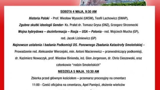 To już szósta z rzędu konferencja i uroczystości upamiętnienia ofiar Smoleńska i Katynia, organizowana przez Komitet Obchodów Rocznicy Katastrofy Smoleńskiej, w skład którego wchodzą także Kluby Gazety Polskiej z Filadelfii, Nowego Jorku i stanu New Jersey, a który skupia też inne organizacje, m.in. Koło Przyjaciół Radia Maryja z NJ, portal Pamiec.us, KPA – oddział NJ i inne lokalne organizacje.