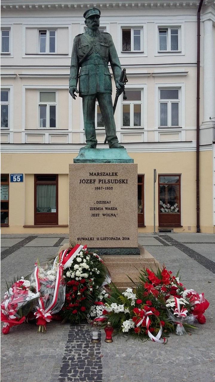 Klub Gazety Polskiej – Myśli Patriotycznej w Suwałkach 24.08.2016 r.- w 97 Rocznicę Wyzwolenia Suwałk 24.08.1919 r. przez 41 Suwalski Pułk Piechoty im. Marszałka Józefa Piłsudskiego zapalił biało-czerwone znicze pod pomnikiem Marszałka Józefa Piłsudskiego w Suwałkach.