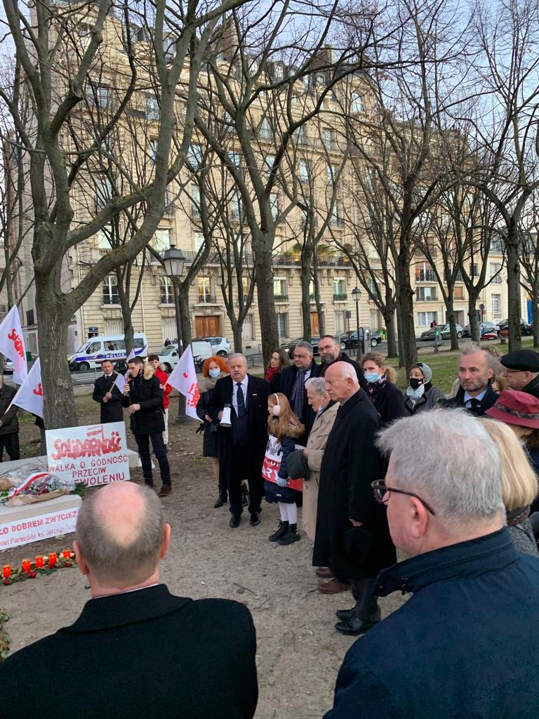 – Dwa lata temu zainicjowaliśmy działania, zainteresowaliśmy ambasadę tym, jak ten pomnik wygląda. Ambasador otworzył nam drzwi do administracji francuskiej i w końcu udało nam się zebrać wszystkie pozwolenia, rok temu udało nam się wyremontować pomnik, ale w związku z tym, że był koronawirus, nie byliśmy w stanie podziękować władzom. Stąd dzisiejsze spotkanie to z jednej strony uczczenie 40-lecia ogłoszenia stanu wojennego i ofiar, które poległy plus ta uroczystość odsłonięcia pomnika i podziękowania władzom za pomoc
