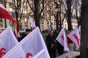 „W tym miejscu, począwszy od 13 grudnia 1981, Polacy i Francuzi protestowali masowo i solidarnie przeciwko wprowadzeniu stanu wojennego i prześladowaniom w Polsce, świadcząc swe poparcie dla „Solidarności”, dla wolności i niepodległości Polski. Pamiętajmy o tych dniach”.