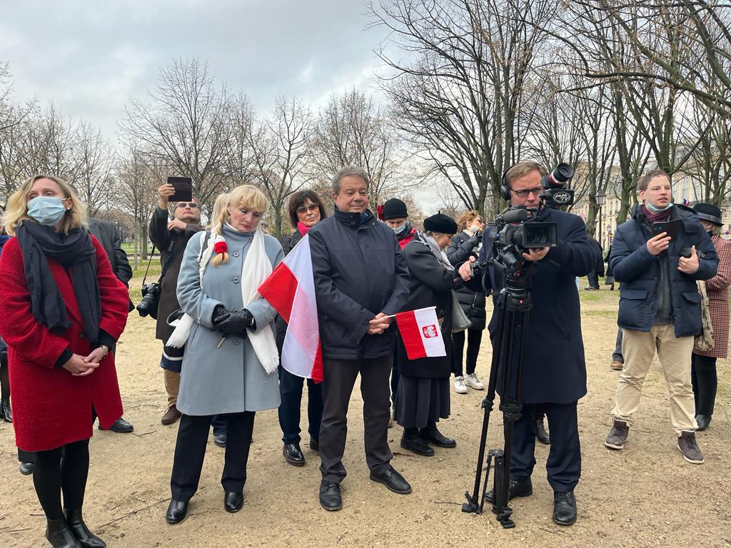 – Mieliśmy taką kameralną uroczystość. Zainteresowaliśmy władze francuskie 40. rocznicą wybuchu stanu wojennego w Polsce, przybyła reprezentantka pani mer Paryża, tutaj z 7. dzielnicy, gdzie jest ambasada – oni nam dużo pomogli przy rekonstrukcji pomnika, który w końcu oddaliśmy. Dziś był pierwszy moment, gdy koronawirus nam nie zagrażał i mogliśmy władzom francuskim, władzom dzielnicy podziękować