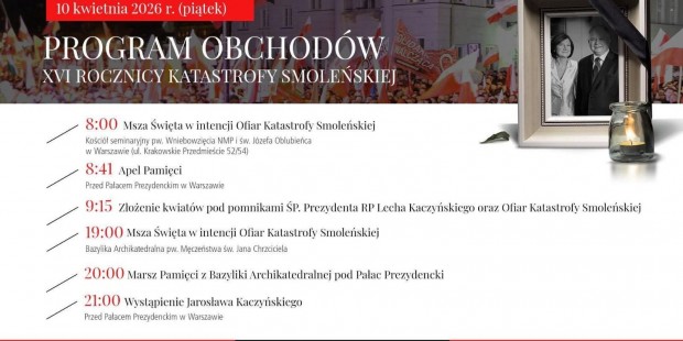 Obchody 16. rocznicy katastrofy smoleńskiej rozpoczną się w piątek, 10 kwietnia, o godzinie 8.00, mszą świętą w intencji ofiar katastrofy, która odbędzie się w kościele seminaryjnym pw. Wniebowzięcia NMP i św. Józefa Oblubieńca w Warszawie na Krakowskim Przedmieściu.
