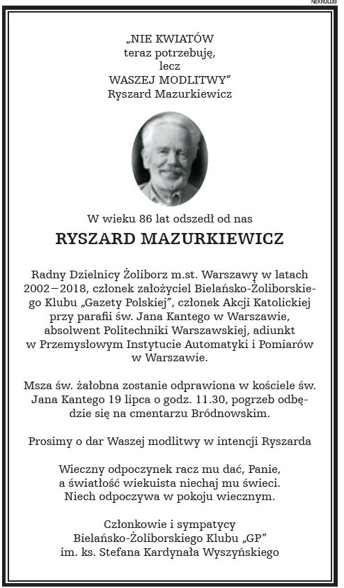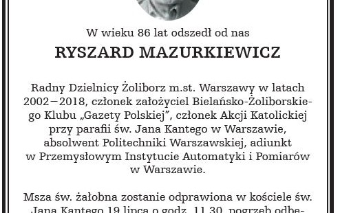 WARSZAWA BIELANY – ŻOLIBORZ | Odszedł od Nas Ryszard Mazurkiewicz