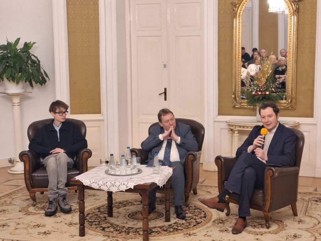 16.01.26 o godz.18.00 w Sali Koncertowej Domu Polonii w Pułtusku, odbyło się spotkanie pt.”Co z tą Polską?” W spotkaniu uczestniczyli jak zawsze Dr Oskar Kida i Oskar Szafarowicz oraz gość specjalny Prof. Jan Majchrowski.