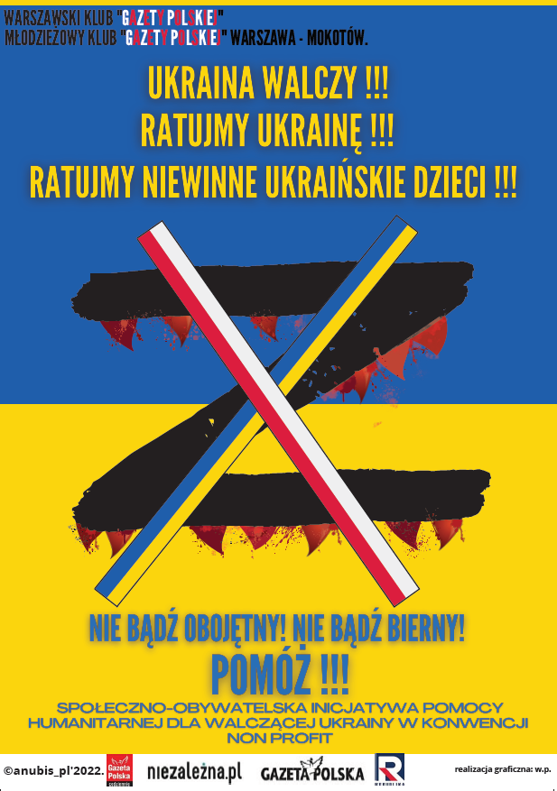 Inicjatywa Pomocy Humanitarnej Dla Walczącej Ukrainy w konwencji Non-Profit jest organizowana m.in. przez Warszawski Klub Gazety Polskiej i Młodzieżowy Klub Gazety Polskiej Warszawa-Mokotów.