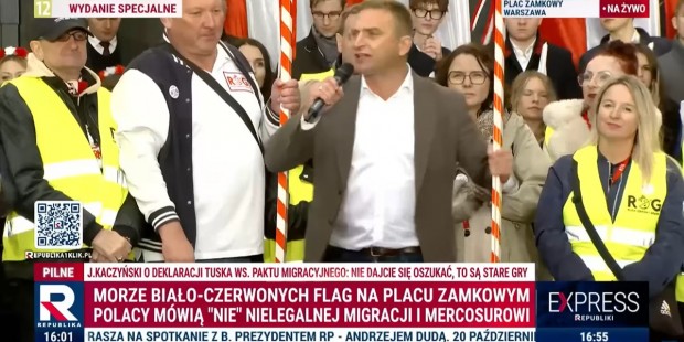Podczas wielkiej manifestacji w Warszawie przeciwko nielegalnej migracji i Mercosur głos zabrał także szef Ruchu Obrony Granic Robert Bąkiewicz.