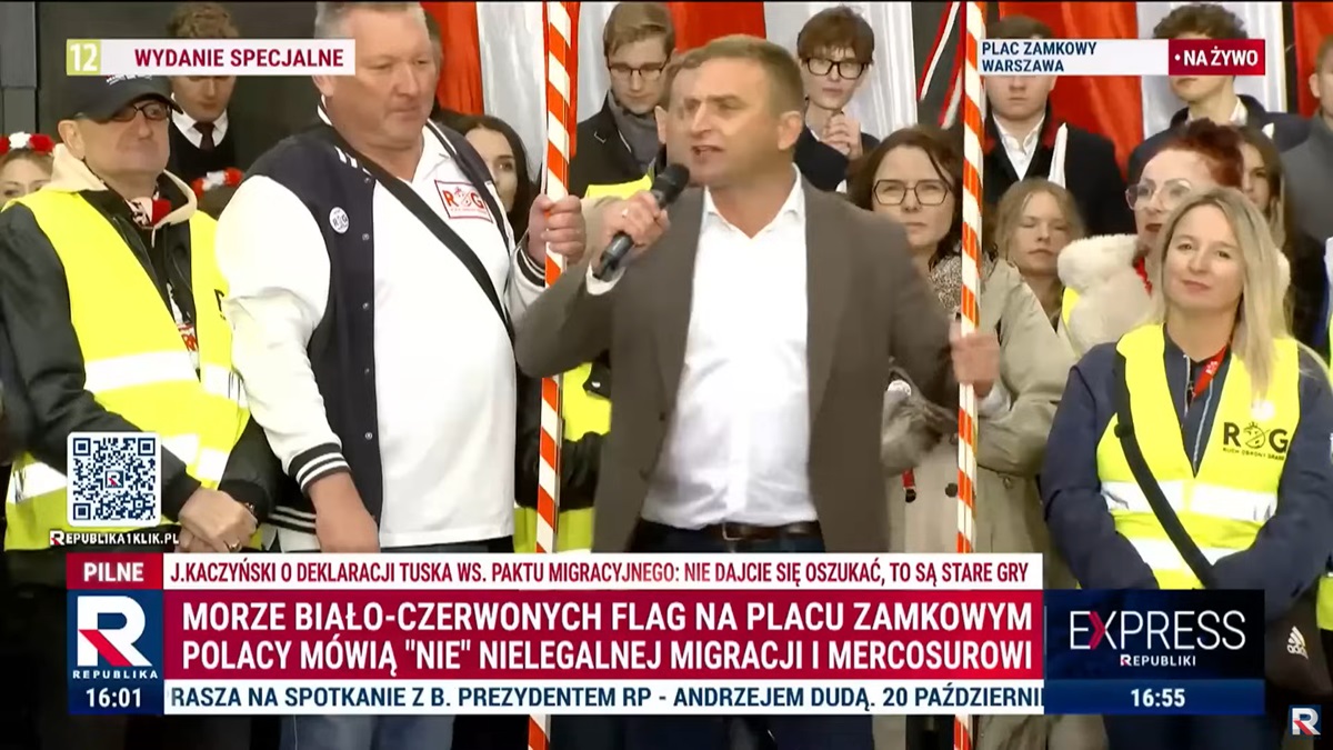 „Dziękuję Klubom Gazety Polskiej” – mówił na manifestacji 11 października w Warszawie szef Ruchu Obrony Granic Robert Bąkiewicz. Klubowicze licznie stawili się w stolicy, by zaprotestować przeciwko nielegalnej migracji, Mercosur i polityce rządu Donalda Tuska.